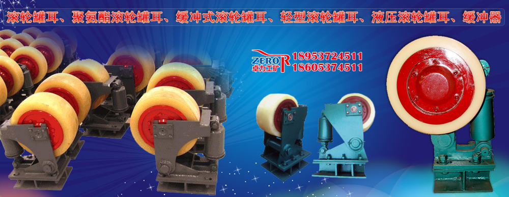 滾輪罐耳主要由輪軸、支架、緩沖裝置、底座等組成。
