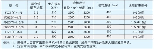 翻車機又名翻罐籠,其主要規(guī)格為:FDZ(B)Z(Y)-1(1.5)/6(9)。它是礦山和煤礦使用固定式礦車運輸中轉(zhuǎn)的主要卸料設(shè)備,具有生產(chǎn)效率高、使用簡單、安全可靠等特點!