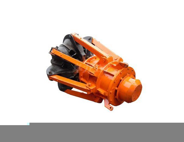 由氣動(dòng)機(jī)、減速器、卷筒、制動(dòng)器和繩輪機(jī)構(gòu)組成。懸吊抓斗的鋼絲繩一端固定在臂桿上,另一端經(jīng)動(dòng)滑輪引入臂桿兩端的定滑輪,并通過機(jī)架導(dǎo)向輪纏至卷筒。司機(jī)控制氣閥,氣動(dòng)機(jī)帶動(dòng)卷筒正轉(zhuǎn)或反轉(zhuǎn)以升降抓斗。制動(dòng)器與氣動(dòng)機(jī)同步動(dòng)作,當(dāng)氣動(dòng)機(jī)經(jīng)操縱閥引入壓氣時(shí),同時(shí)接通制動(dòng)閥氣缸松開制動(dòng)帶,卷筒開始轉(zhuǎn)動(dòng)。反之,當(dāng)氣動(dòng)機(jī)停止工作時(shí),制動(dòng)帶借彈簧張力張緊而制動(dòng)。除繩輪機(jī)構(gòu)外,整個(gè)提升機(jī)構(gòu)安裝在回轉(zhuǎn)盤以上的機(jī)架上,并設(shè)有防水保護(hù)罩。