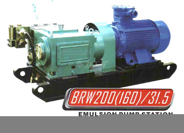 其是由兩臺BRW200/31.5型乳化液泵和一臺RX-1500型乳化液箱組成,該系列泵為臥式五柱塞往復泵,在傳動端采用泵本身自帶的一對斜齒柱齒輪減速和傳統的曲柄連桿滑塊結構,在液力端采用分離式閥體結構,在潤化方式上采用飛濺方式和齒輪油泵循環噴射,潤滑油采取機外循環冷卻的方式,其具有流量均勻、壓力穩定、運轉平穩、脈沖小、噪音低以及維修方便等優點。