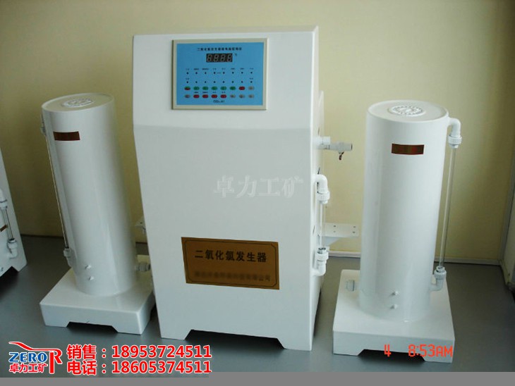 二氧化氯發生器采用化學反應原理,氯酸鈉水溶液與鹽酸在負壓條件下,經供料系統定量輸送到反應系統中,在一定的溫度下經過負壓曝氣反應產生二氧化氯與氯氣的混合氣體,經吸收系統吸收后,形成一定濃度的二氯化氯混合消毒液,然后接入待處理水中。化學法二氧化氯用于污水處理系統的消毒及殺菌,具有優良的效果。化學法二氧化氯操作采用自動控制,減少勞動強度。消毒系統無需專人看管。