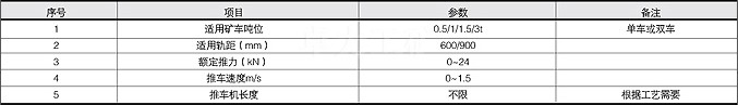 TX型銷齒推車機是由一列滑到內運行的板鏈小車組成,板鏈小車底部在全長內設置等距的銷軸,板鏈上安裝有操車使用的推爪和拉爪,推爪推礦車碰頭,拉爪拉礦車車軸,由液壓馬達驅動銷輪轉動,使整列板鏈小車前后運動。TX型銷齒推車機主要用于各種罐籠提升的礦井井上,下車場裝卸礦車和調運車輛,能夠實現裝罐、卸罐、調運、進罐推車、回程拉車等功能。 性能特點 1、反應靈敏,動作平穩,推力強勁,并可實現推力、推速靈活調整。 主要技術參數