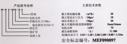 HBMD-20/10-75S型煤礦用混凝土輸送泵/砂漿泵,是我公司根據煤礦行業需求最新研制的一種適用于煤礦井下高壓,長距離物料輸送的特殊柱塞泵。